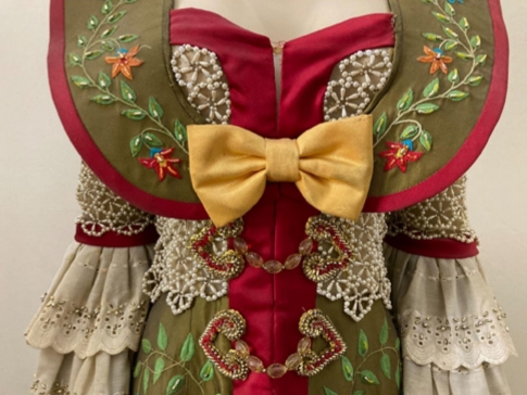 A partir de ahora, profundizaremos en la exposición propuesta desde el inicio de este estudio, el vestido expuesto en el Museu do Doce, considerado aquí como un importante objeto de cultura material y soporte de la memoria de la Feria, que es parte fundamental de la historia de las dulces tradiciones de la ciudad. El vestido en cuestión se puede ver en la Figura 1, es parte de la Colección Feira Nacional do Doce - Fenadoce.