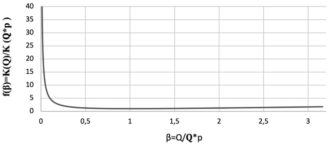 Q* y una cantidad Q. Los valores de β se calculan con la siguiente expresión: β=QQ*.