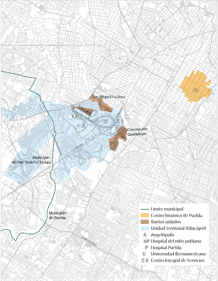 Mapa 1 Barrios aislados en la Unidad Territorial Atlixcáyotl