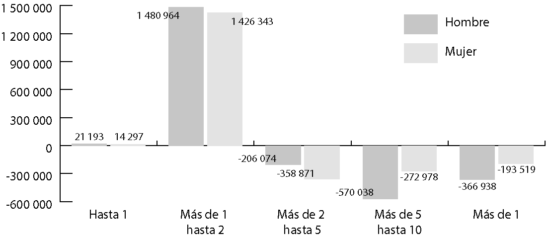 | Más de 10 | 951 044 | 584 106 | -366 938 | 7.5 | 4.5 |