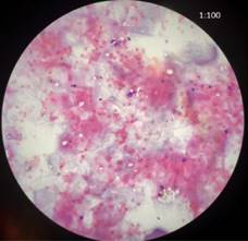 Diagnostic and therapeutic pericardiocentesis was performed subcostally and guided by echocardiography, obtaining 1,800 milliliters of liquid material with turbid characteristics, similar to «gold paint». Samples were taken for histopathological study, cultures and cytochemical study.