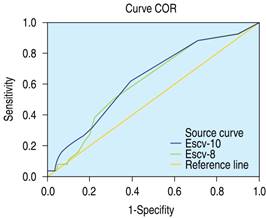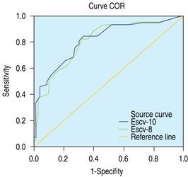 Figure 2: ROC curves of sensitivity and specificity of ESCV-8 and ESCV-10 (study 2).