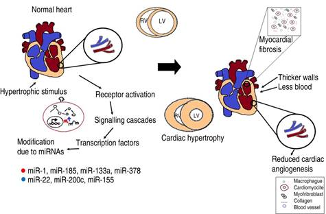 MicroRNA-1 is a muscle tissue-specific microRNA abundantly expressed in the heart, and together with other microRNAs, has a significant role in the development of embryonic stem cells and cardiomyocyte progenitor cells.5 MicroRNA-1 is considered an anti-hypertrophic microRNA because an increase in its expression is associated with less cardiac hypertrophy.4 Some studies have shown that microRNA-1 is even important for cardiogenesis. In 2007 were described alterations in cardiogenesis in mice whose concentration of microRNA-1 had been altered (Figure 2).6