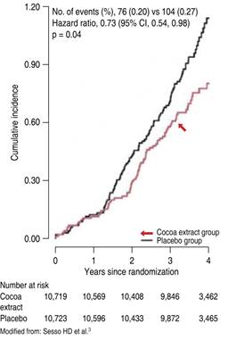In conclusion, current therapies based on statins reduce the risk of death from CVD by up to 24%.4 The results of the COSMOS study report a 27% reduction in mortality from CVD with the use of cocoa phytochemicals; therefore, the combined use of both therapies would synergistically favor the prognosis of patients in primary and secondary prevention.