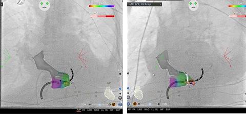 3D-EAM was developed to support the mapping and ablation of arrhythmic substrates by providing a more useful image of heart chamber size and catheter positioning than fluoroscopy alone. Long-standing concerns about the effects of ionizing radiation exposure on laboratory staff and patients led researchers to explore the ability of these systems to effectively and safely minimize radiation exposure. Currently, the goal is to attempt the elimination of fluoroscopy, even for more complex CA procedures. Operators rely on this traditional imaging modality and usually generate several fluoroscopic images during a CA procedure. The integrated view provided by the CARTO-UNIVU™ module in conjunction with the CARTO-3® system, enables operators to obtain several sources of visual information using different imaging modalities, helping navigation during CA procedures. This approach increases confidence and decreases the necessity of repeated fluoroscopic images.11-13