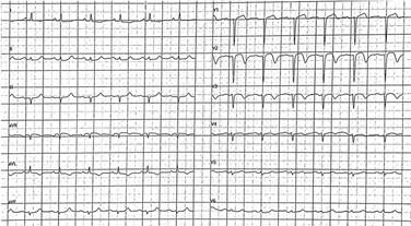 Figure 1: 12-lead electrocardiogram: sinus rhythm and inversion of T wave in leads aVL, V2, and V3 with Q waves in lead aVR.