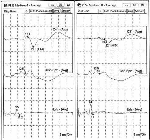 PESS: Potencial evocado somatosensorial con registro en ME posterior a la estimulación de un nervio periférico.