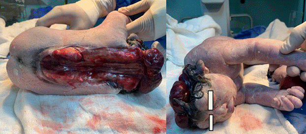 The following are images of a 37-week gestation newborn from Córdoba, Veracruz, whose mother reported adequate prenatal care and folic acid supplementation, who was diagnosed by ultrasound with craniorachischisis, and whose pregnancy was carried to term (Figure 1).