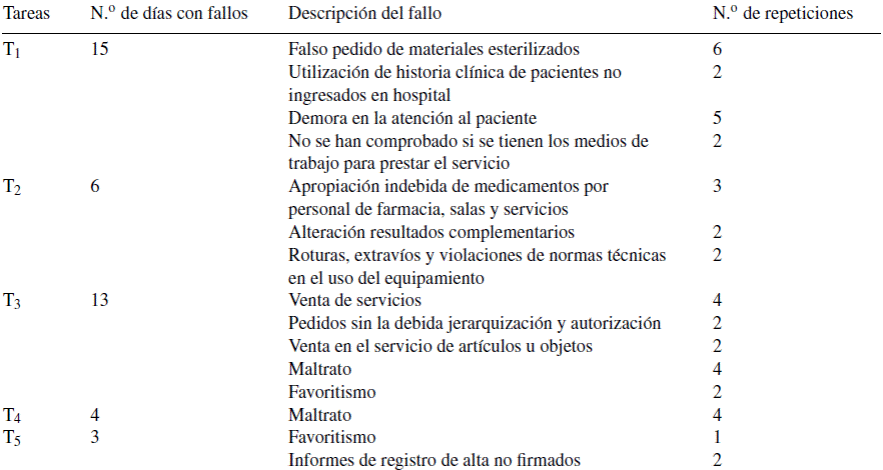 Luego se determinaron los cortes críticos ( Tabla 9 ), como se supone independencia en los fallos, la probabilidad de que fallen ambos procedimientos es el producto de las no fiabilidades de las tareas que la componen. Para los cortes se seleccionaron aquellas actividades con probabilidad de no fiabilidad superiores al 5% (este umbral fue fijado por el equipo auditor), en la Tabla 9 , se resume el diagnóstico de los cortes.