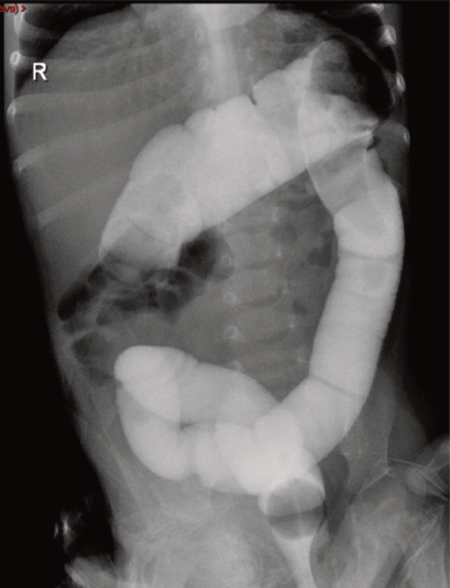 Figura 3 Colon por enema: se observa el paso del medio de contraste hidrosoluble hasta el ángulo hepático
