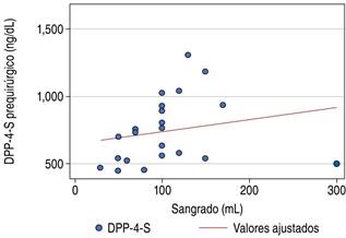 Tabla 3: Correlación valores dipeptidil peptidasa-4 sérica y variables quirúrgicas cuantitativas.