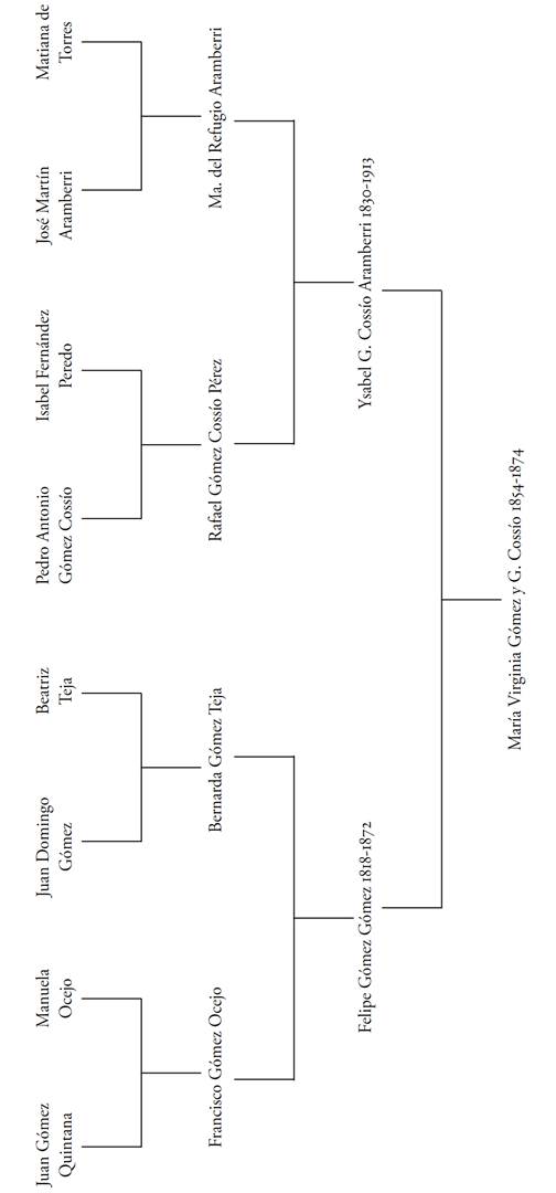 El árbol de ascendencia (esquema genealógico 4) nos muestra que la abuela debió apellidarse Gómez y Gómez Cossío, quizá por ello cuando las fuentes se refieren a ellos usan el Cossío que, al parecer identificaba mucho más a la familia.