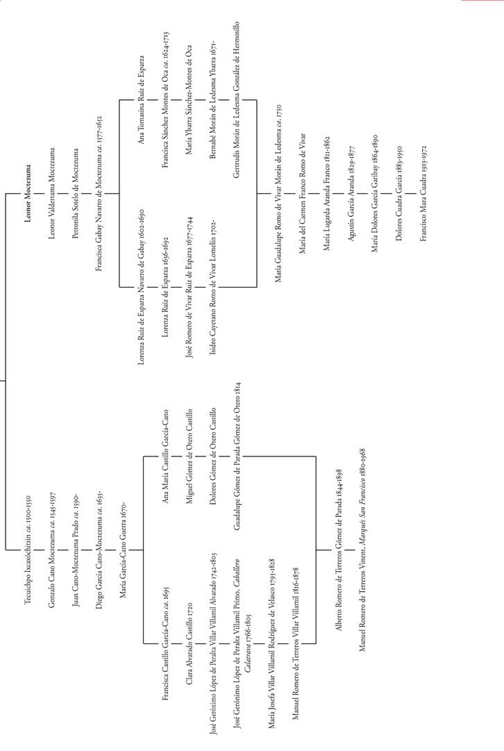 Los dos descendían de Moctezuma Xocoyotzin… El parentesco era tan lejano que no lo alcanzaba un galgo, pero comprobaba que, como decía José Ignacio Conde, en este país, y aun cuando no somos conscientes de ello, de población autóctona americana, esclavitud africana y emigrantes europeos casi todos tenemos un poco (esquema genealógico 8).