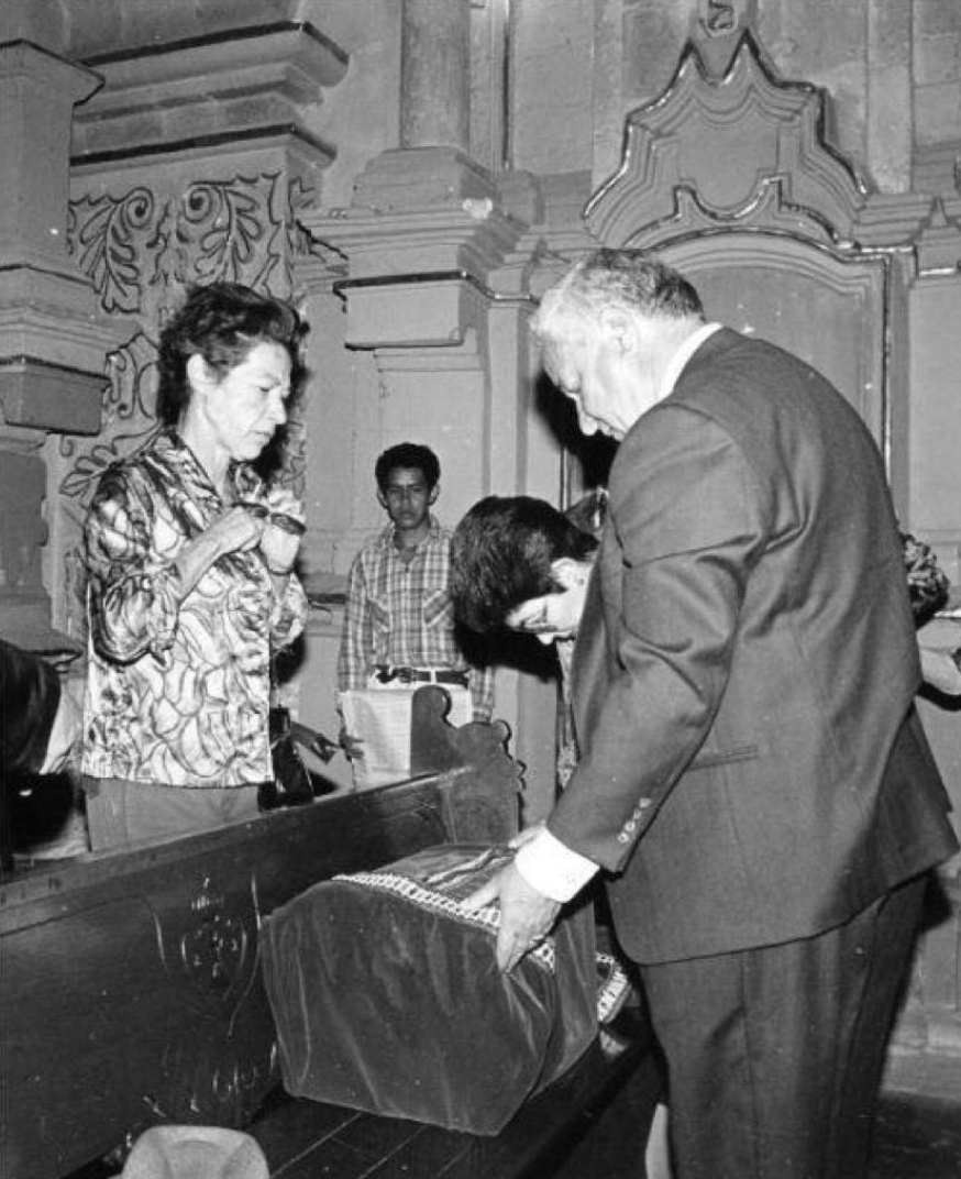 Conscientes de la responsabilidad tribal, las sobrinas, Gabriela Oliva Maza y Leonor Maza Sánchez, presidirían la ceremonia en la que Manuel González Galván llevó a San Luis Potosí los restos de Francisco de la Maza, al no haber podido ser enterrados junto a Sor Juana, como dispuso en su última voluntad (fig. 5).