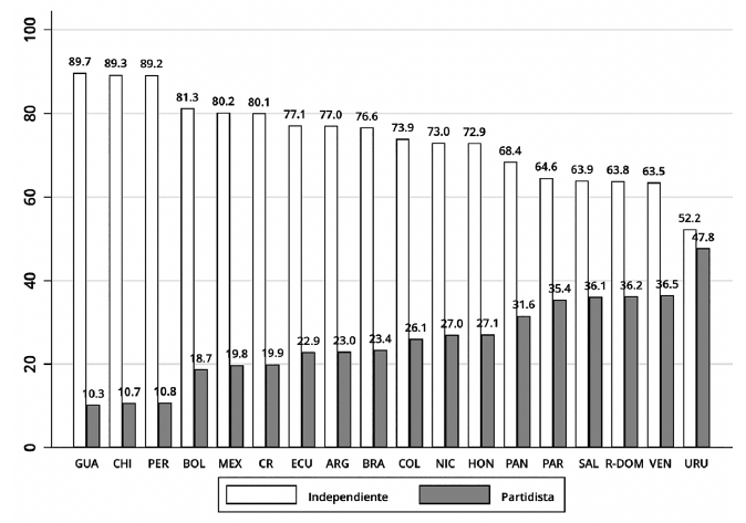 1. La distribución de independientes y de partidistas en la región Latinoamericana.