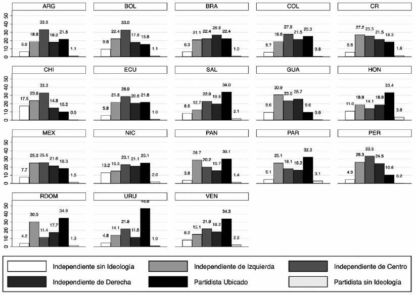 Al tener en cuenta lo anterior, es pertinente mostrar el panorama de este fenómeno en perspectiva comparada en América Latina, pues la descripción de la independencia partidista en distintos sitios puede dar indicios que permitan comprender fenómenos políticos que están ocurriendo hoy en día en la región y evaluar, al menos panorámicamente, la existencia de un lazo programático en los independientes, el potencial de anclaje electoral que pueden tener los partidos políticos de acuerdo a la presencia de la ideología y la cristalización de las etiquetas de izquierda y de derecha en el electorado latinoamericano sin identidad partidaria.