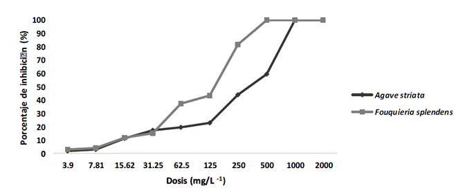 Cuadro 3 Concentración inhibitoria al 50 % (CI50) de extractos metanólicos de Agave striata y Fouquieria splendens sobre Pythium aphanidermatum y Rhizoctonia solani.