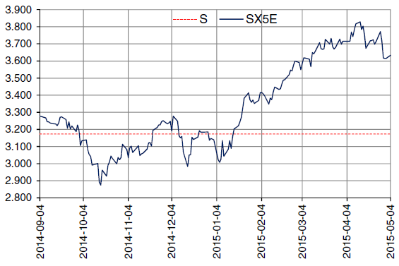 donde c(0,M 0 ) es el valor de opción europea de compra sobre el Eurostoxx en la fecha de emisión.