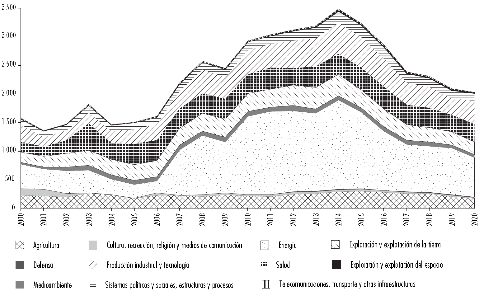 Figura 2 Distribución del gasto público en I+D 2000-2020 (millones de dólares/ precios constantes)