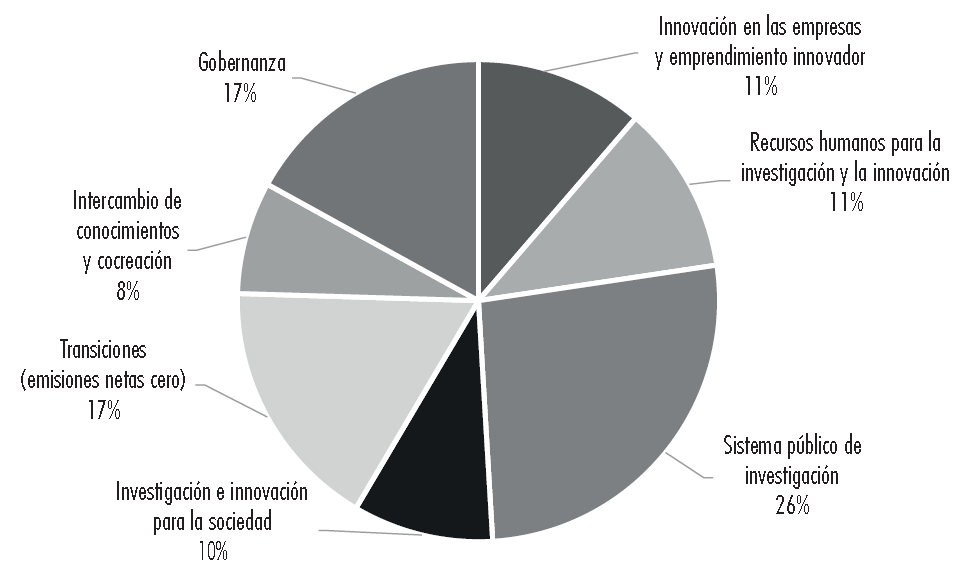 Por otra parte, de las 35 PCTI, 11% de ellas se centraron en los temas de innovación en las empresas y los recursos humanos para la investigación y la innovación. Asimismo, un punto importante es que 10% de las políticas abordaron la temática de la investigación e innovación para la sociedad. Considerando esto último, y contemplando que 17% de las PCTI se interesaron por el tema de transiciones energéticas, sugiere que las PCTI en México no sólo se enfocaron en asuntos tradicionalmente abordados por las políticas de innovación -crecimiento económico y competitividad (Schot y Steinmueller, 2018)-, sino que también procuraron lidiar con temas sociales y energéticos. Ambas temáticas guardan una estrecha relación con la nueva ola de políticas de innovación transformativas (Haddad et al., 2022).