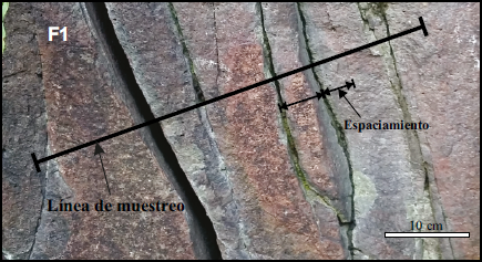 Los coeficientes de variación obtenidos están entre 0.58-1.82, lo que sugieren que las fracturas tienden a agruparse. En las líneas de muestreo que incluyen a dos familias de fracturas (F1 y F2) se observa el coeficiente de variación más alto, con un rango de entre 1.58 y 1.82 (Tabla 1).