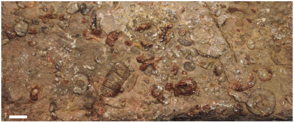 The echinoderms are represented by Cambrian eocrinoids-blastoids (Nardin et al., 2009; Buitrón et al., 2017b, 2021) and by numerous plaques of isolated Mississippian-Permian crinoids (Strimple, 1971; Buitrón, 1977, 1992; Buitrón et al., 1987, 2000, 2004, 2005a, b, 2006, 2015a, b, 2016; Buitrón and Solís, 1993; Esquivel-Macias et al., 2000, 2004, 2005; Solís-Marín et al., 2013), which in most cases formed encrinites (Gómez-Espinosa and Buitrón, 2017).