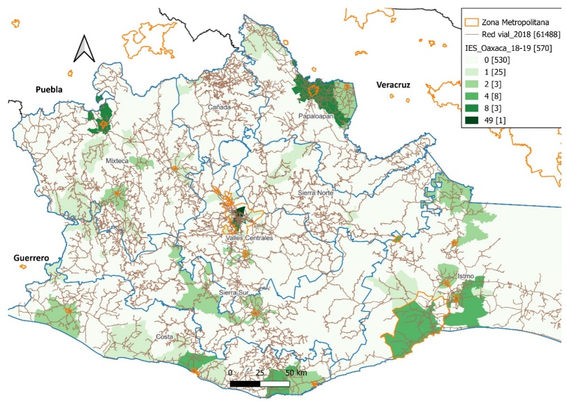 González et al. (2022) analizaron la distribución territorial de la oferta de educación superior en Oaxaca desde los enfoques de la justicia espacial y el derecho al acceso educativo. Sus hallazgos indican que dicha oferta no solo es desigual, sino también inequitativa e injusta a nivel estatal, regional, interregional e intrarregional. Además, concluyen que el mero incremento de planteles no modifica las tendencias históricas; para lograr un impacto real, es necesario replantear la lógica de ubicación y priorizar espacios con mayores niveles de marginación.