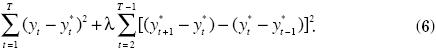 La mecánica del filtro está diseñada para minimizar la varianza del componente cíclico (Yc) sujeto a una penalización sobre las variaciones que tenga la segunda diferencia del componente permanente, es decir, se castigan los cambios que sufra la pendiente de la tendencia. En este sentido, el filtro de HP minimiza la siguiente expresión:
