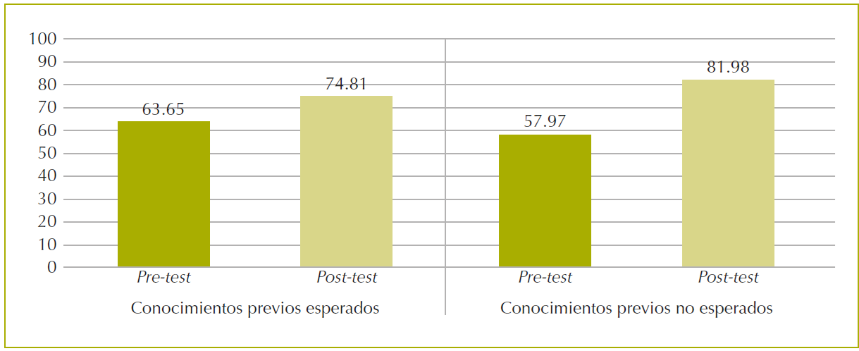 Cabe destacar también que el grupo de estudiantes de los cuales no se esperaba conocimientos previos partió de una media menor en el examen pre-test y logró una mayor media en el post-test, por lo que un mayor número de horas curriculares puede asociarse con un mayor aprendizaje. También, es necesario señalar que la estrategia metodológica implementada en este estudio no comparó la efectividad de la estrategia pedagógica estudiada con otra cualitativamente distinta.