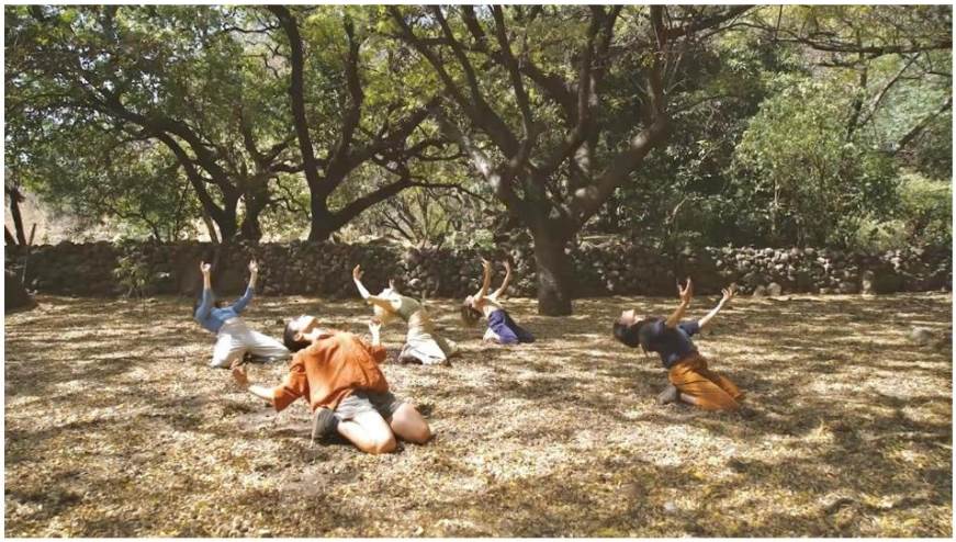 In this subsection we are interested in showing the internal coherence of the work, through the interpretation of the video dance of The Poetics of Pleasantness. From a general appreciation we can point out that the work condenses the imperative that has been taking shape among some women about the need to recognize and invoke the Feminine Divine (Shinoda, 2017), especially, in the face of a world in which an inexorable tendency towards the masculinization of life has been presented. The piece consists of different movement sequences, and the video dance was recorded in a not at all fortuitous setting: the wooded area in the vicinity of the Cerro del Tepozteco, in Morelos, Mexico. A mystical place, recognized worldwide, where an archaeological zone is located, and which is considered a sacred valley by the shamanic tradition.