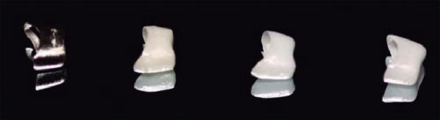 Ten copings were manufactured for each system according to manufacturers’ instructions. Four groups were established, one for each of the following systems: CAD/CAM Cerec InLab (Sirona®), CAD/CAM Zirkonzahn (Zirkonzahn®), Zirkograph 025 ECO (Zirkonzahn®) as well as one control group formed by metallic copings (Figure 2). Pre-sintered zirconia was used, which later completed sintering according to instructions for each system. Control group was formed by ten metallic copings manufactured following the lost wax system.