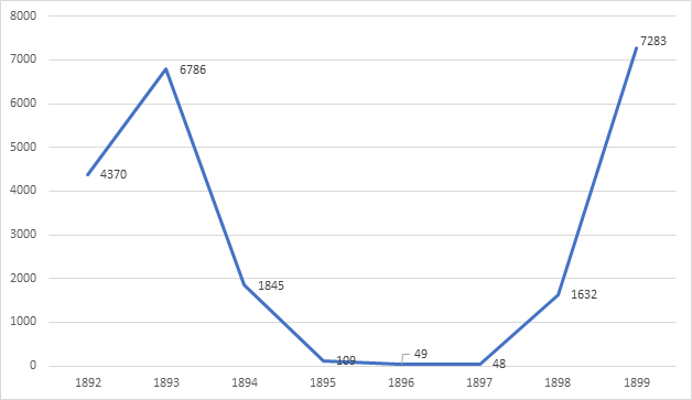 Figura 4 Muertes por viruela en Jalisco, 1882-1899