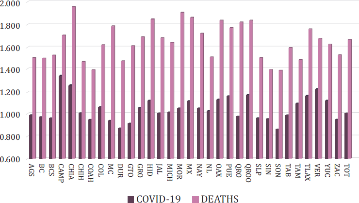 As of March 30th, 2021, Mexico’s mortality and lethality rates were 156 and 9.1 per 100,000 inhabitants, respectively16, which placed it among the hardest hit countries by COVID-19. At the state level, the mortality and lethality rates were significantly higher in some states17.