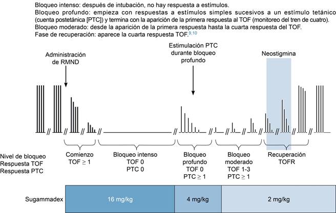 La incidencia de bloqueo neuromuscular residual sigue siendo una complicación importante debido a las altas dosis utilizadas de rocuronio, en el contexto de secuencia de intubación rápida; por lo cual, algunos medicamentos como el sugammadex han sido ampliamente usados para una reversión rápida y eficaz del BNM (Figura 1).8
