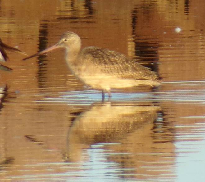 Our observation represents the first record of a Marbled Godwit in the Potosino-Zacatecano Plateau, San Luis Potosí, in the centre of mainland Mexico, and may be the result of early migration by some individuals. The potential winter distribution of the Marbled Godwit in Mexico occurs mainly on the Pacific coast, in the states of Baja California, Baja California Sur, Sonora, Sinaloa and Nayarit (Navarro-Sigüenza & Peterson 2007). As for the Gulf of Mexico, the coasts of Tamaulipas, Veracruz, and Tabasco have ecological suitability for the species (Olson 2011). This suitability increases in the Yucatán Peninsula, showing western Campeche and northern Yucatán and Quintana Roo states as potential areas of distribution (iNaturalistMX 2024). Moreover, even though the easternmost tip of San Luis Potosí state has potential for presence of this species (Ramírez-Bastida & Navarro-Sigüenza 2013), our record in the Potosino-Zacatecano Plateau is located at the opposite end of the state, where there are no records, and that is not considered within the potential distribution of the species (Ramírez-Bastida & Navarro-Sigüenza 2013).