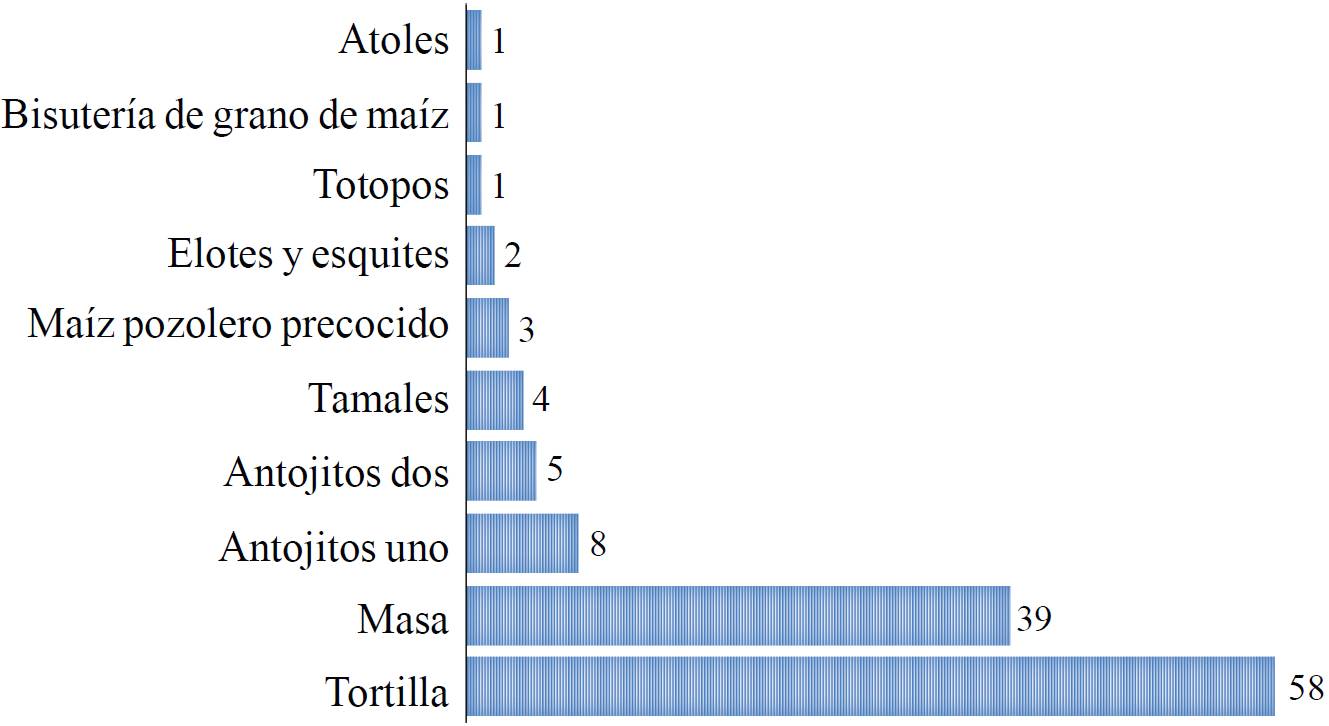 Some producers are interested in learning practices postharvest handling and storage to preserve for as long as your product and look for any opportunity to sell at a better price, especially in the months when the grain is scarce. The results obtained from the information field with the actors that transform and process the grain shows the variety of products made from the corns of colors (Figure 5).