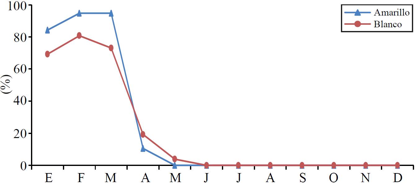 In the State of Mexico, planting date occurs between the months of March and April having a production cycle of seven or eight months, ie the harvest occurs during the month of November (Figure 2).