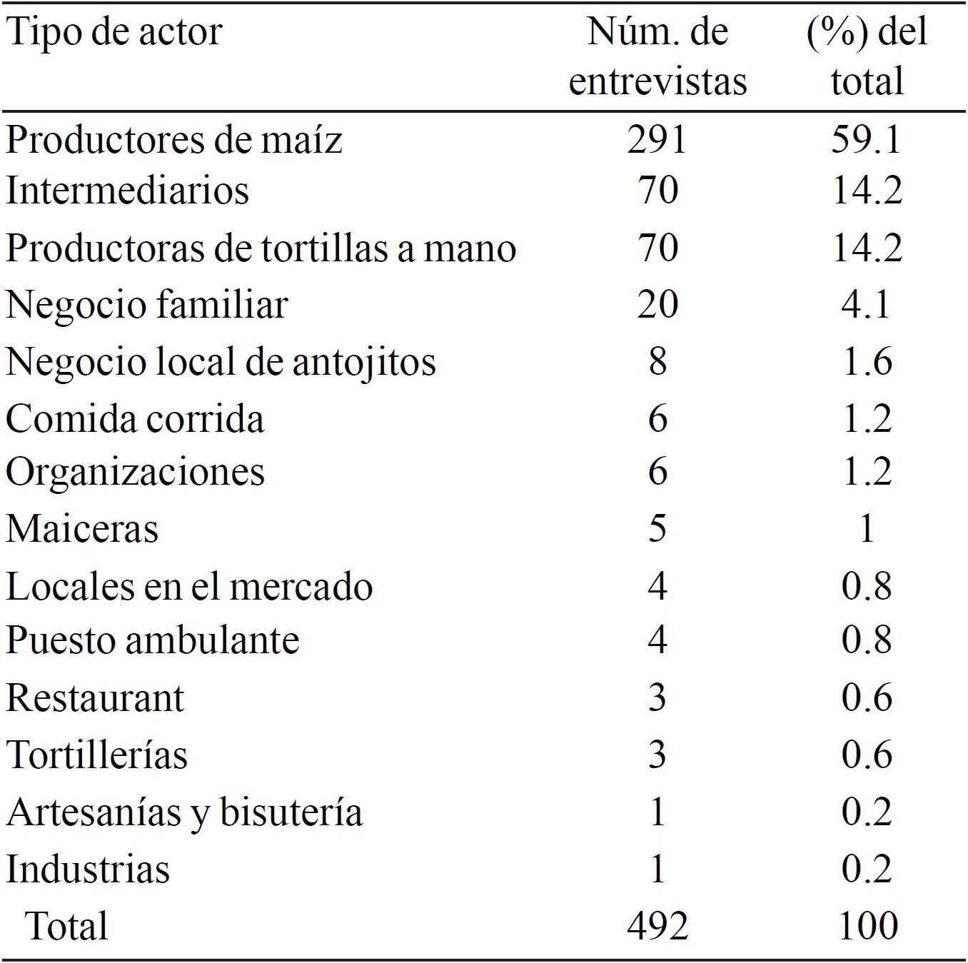 Table 3. Number of players interviewed classified by activity in the commercialization of native corn.