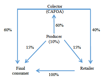 The traditional marketing channel that follows the aromatic from its exit from the farm until its arrival to the final consumer is producer → CAFOA cooperative, which is carried out by 60% of the agents participating in the process.