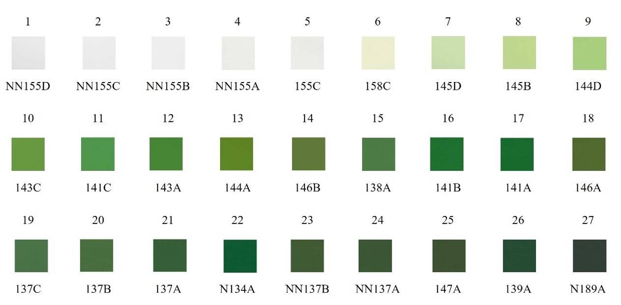 For the color, the Royal Horticultural Society color charts (RHSCC) sixth edition were used, with which a scale was established with consecutive values from 1 to 27, which correspond to the number of colors registered, from white (NN155D) to green with different shades from light to dark (N189A) (Figure 1).