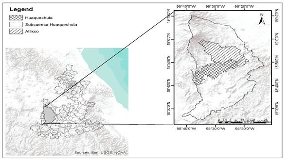 The study was carried out in the area of irrigated annual crop agriculture in the municipalities of Atlixco and Huaquechula, in the Huaquechula sub-basin (Figure 1). The area is located on the Atlixco - Izúcar de Matamoros aquifer, which mostly underlies Phaoezem, Leptosol and Planosol soils. The climate is semi-dry, with summer rains and an average annual temperature of 14 oC to 19 oC (Conagua, 2016).