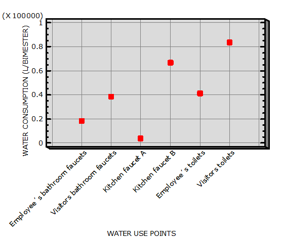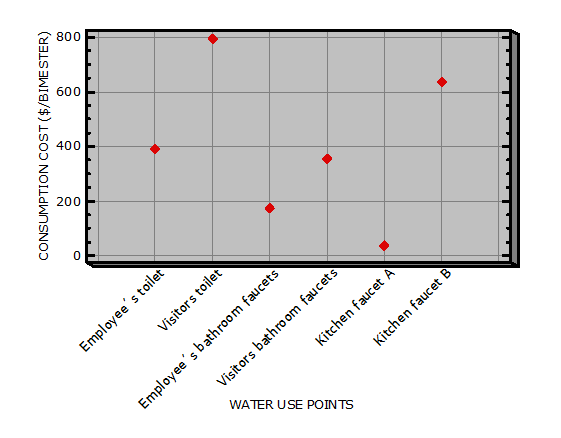 The decrease in the costs of water consumption are a perfect reason for implementing reduction or reuse of water. In Figure 3 presents the bimonthly cost of six points of water use in the whereabouts with potable water supply system, for a total of $2 386.62 pesos the amount of bimonthly cost.