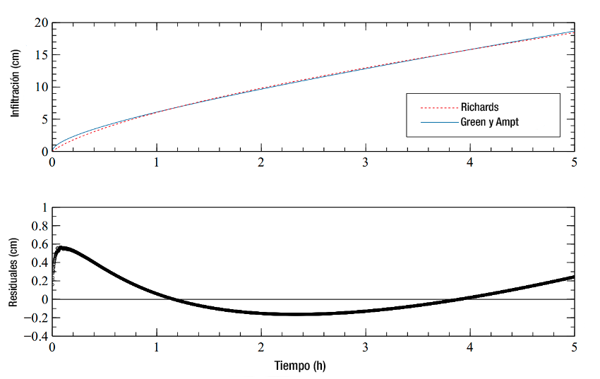Figura 5. Comparación de la lámina infiltrada obtenida con la ecuación de Richards y la modelada con la ecuación de