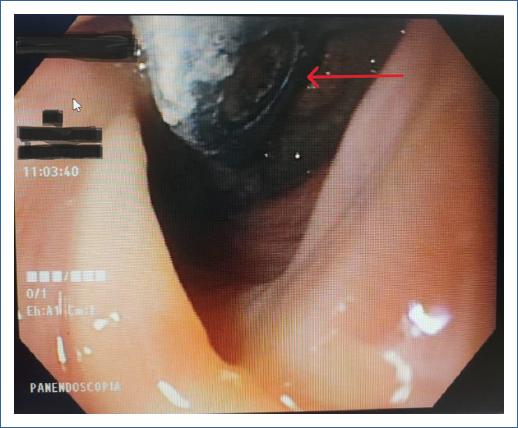 Figura 3 Material de osteosíntesis en la luz esofágica posterior a nivel del cricofaríngeo.
