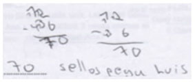 | Hace una resta sin sentido para resolver el problema. |