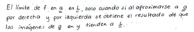 Los sujetos expresan que los procesos de cálculo del límite, por la izquierda y por la derecha, deben dar el mismo resultado (Fernández-Plaza et al., 2013). |