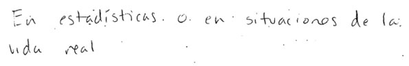 La categoría Situaciones (ST) se aprecia en el 34% de las respuestas de los estudiantes. En la pregunta 3, usan frases como: en la industria, en la medicina, en la economía, en gráficas matemáticas, en la convergencia de una función, en el concepto de derivada, en la estadística, en la arquitectura, en la ingeniería, en la astronomía y en la física. En la figura 16 observamos cómo el estudiante EQM0213 evidencia esta categoría, pues indica que el límite se puede usar en estadísticas.