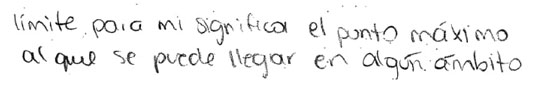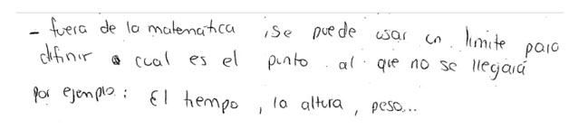 Además, anota dos situaciones generales para el límite (figura 3), por lo que evidencia la categoría Situaciones (ST). Por último, asocia el límite con un extremo (figura 4), por lo que evidencia las categorías Límite como Objeto (LO) y Aspectos de alcanzabilidad y no rebasabilidad (ANR).