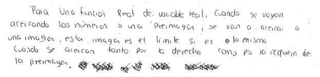 Figura 10 Explicación de la definición del límite (pregunta 1) que manifiesta el estudiante EBM0125.
