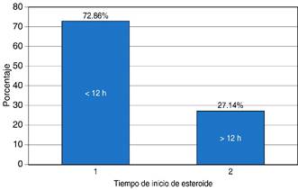 | Tiempo de inicio de esteroides en horas, mediana [RIQ] | 9 [2.12] |